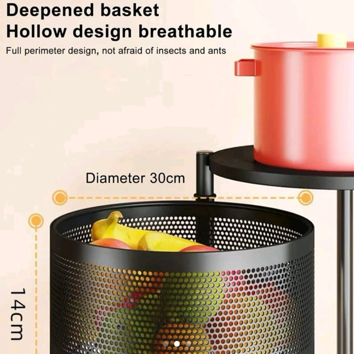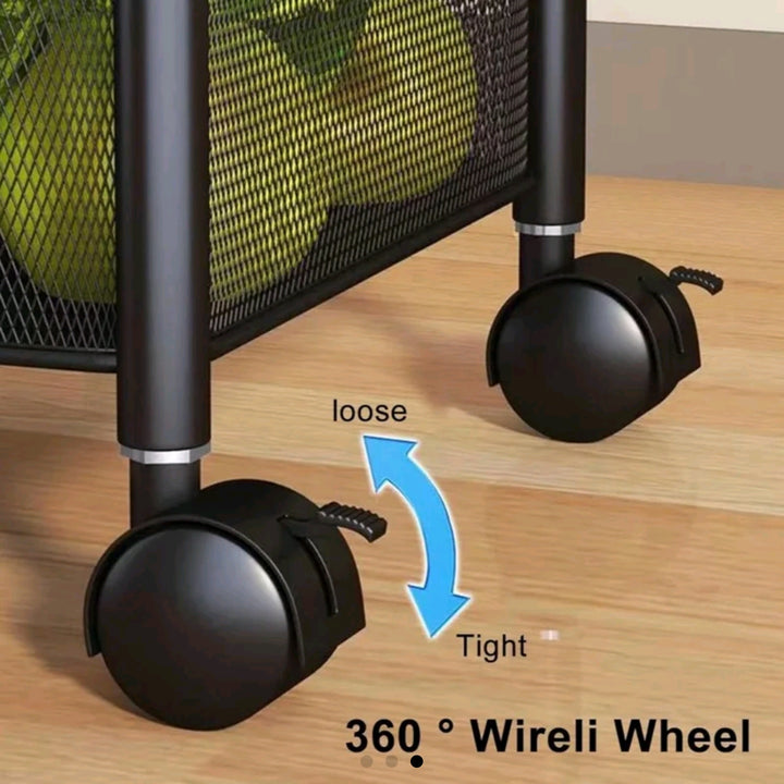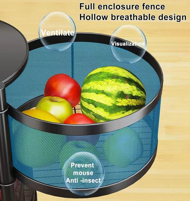 【360 ° MOVABLE DESIGN】The rotating kitchen storage rack has four wheels that support 360 degree rotation, allowing you to move and use this storage basket anytime, anywhere. More importantly, you can easily move it away, so that you can clean the floor and keep it clean at all times.