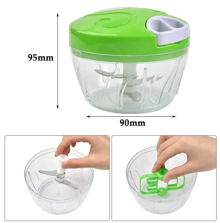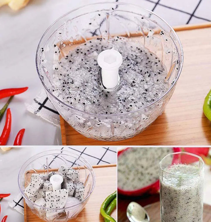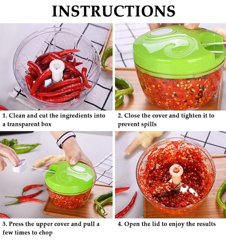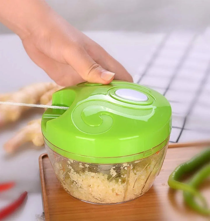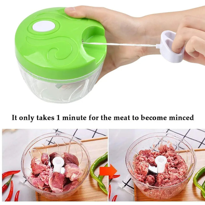 Quickly and easily prep ingredients with the Manual Food Chopper. This compact and efficient kitchen tool lets you chop, mince, and mix a variety of foods with a simple pull of a string.