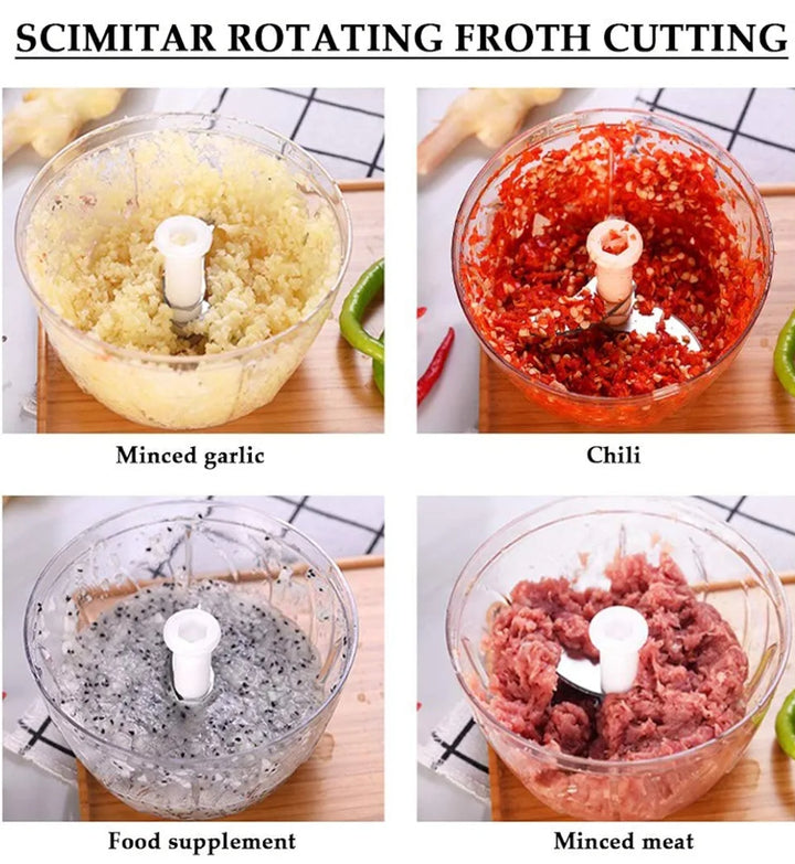 Durable Blades: Equipped with sharp rotating blades, this chopper can mince meat in as little as one minute.