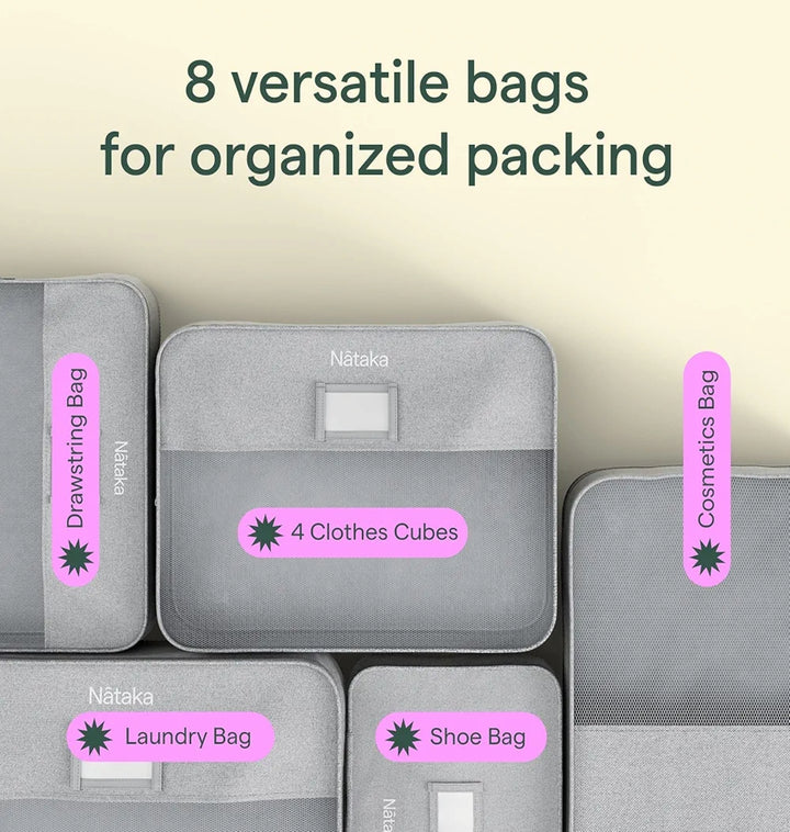 β ππ’π©ππ ππ¬ π΅/ππ¬ π§π₯ππ©ππ ππ‘π§ππ¨π¦πππ¦π§π¦: Our stylish gray travel cubes make it easier to keep organized while utilizing your luggage space, and avoid rummaging through your for misplaced items. If you donβt love it, contact us for a full refund & keep the cubes, no questions asked.