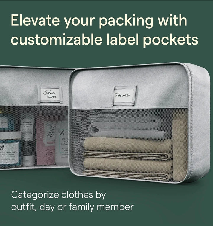 β ππ¨π¦π§π’π ππππππ πππππ π£π’ππππ§π¦: Regular organizers either have generic labels that you canβt remove or none at all. Our 4 clothing cubes have pockets for FLEXIBLE LABELING. You can use the cubes to pack for each family member, PACK FOR EACH DAY OF YOUR TRIP, or pack according to clothing type.