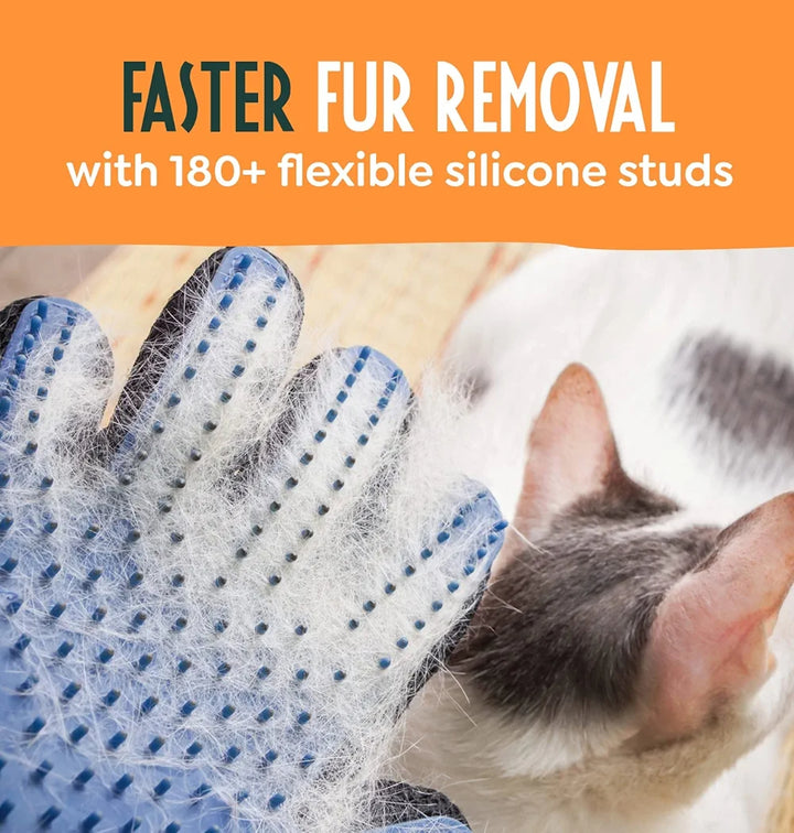 180+ GROOMING STUDS: Our silicone grooming studs on our pet grooming gloves for dogs and cats offer unparalleled performance. Made with premium silicone and longer than our competitors, our cat gloves remove cat fur and straighten matted fur.