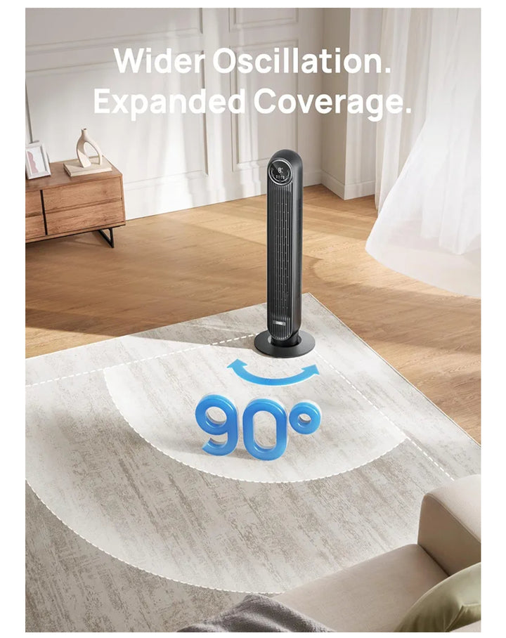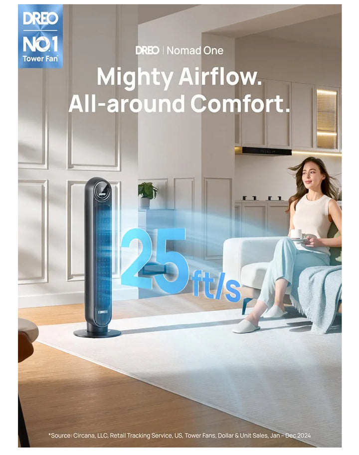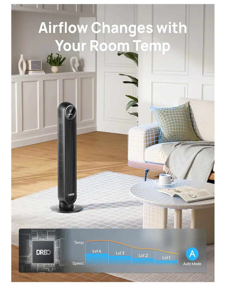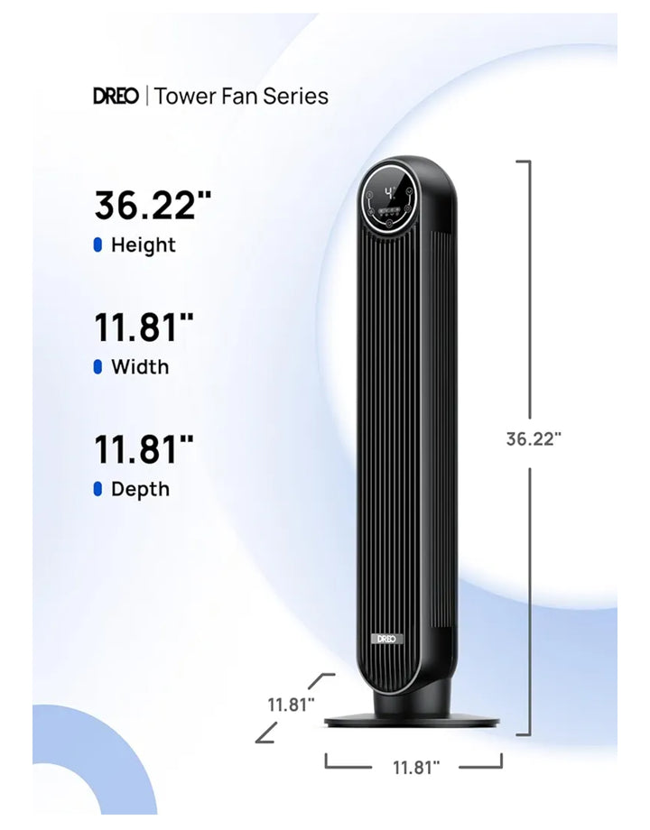 Powerful Meets Portable: Dreo's all-in-one airflow system combines with a supercharged electric motor, delivering high-speed, refreshing winds. This 36-inch compact tower fan enlivens every inch of air in your living space fast at up to 24ft/s.