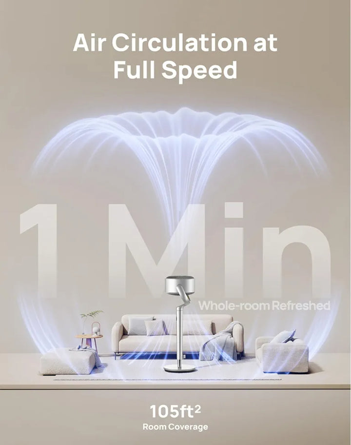𝐎𝐦𝐧𝐢-𝐝𝐢𝐫𝐞𝐜𝐭𝐢𝐨𝐧𝐚𝐥 𝐎𝐬𝐜𝐢𝐥𝐥𝐚𝐭𝐢𝐨𝐧: Boost air circulation to every inch of your room with the oscillating fan 120˚ simultaneous vertical and horizontal oscillation, this quiet fan turns head in every direction giving comfort to everyone, everywhere. Making it the perfect standing fan perfect for bedrooms, offices, living rooms, or anywhere you need a cool and comfortable environment.