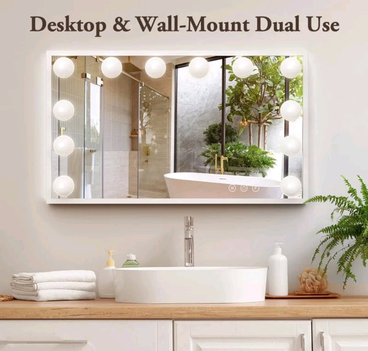 Desktop & Wall-Mount Dual Use: This LED makeup mirror is designed for both desktop and wall-mounted installation, offering flexibility for different spaces. The set includes 1 screwdriver, 2 wall-mounting screws, and 4 bracket screws, providing everything you need for wall installation or desktop use. Its sleek, elegant design enhances the aesthetic of any makeup desk or bathroom vanity mirror with lights.