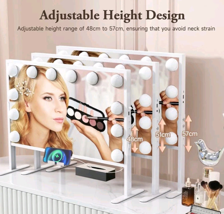 Adjustable Height Design: The 60cm-wide vanity mirror offers an adjustable height range of 48cm to 57cm, ensuring that you avoid neck strain while applying makeup. Whether for detailed eye makeup or eyebrow shaping, you can adjust the height for the perfect viewing angle, making it ideal for those who demand precision in their makeup routine.