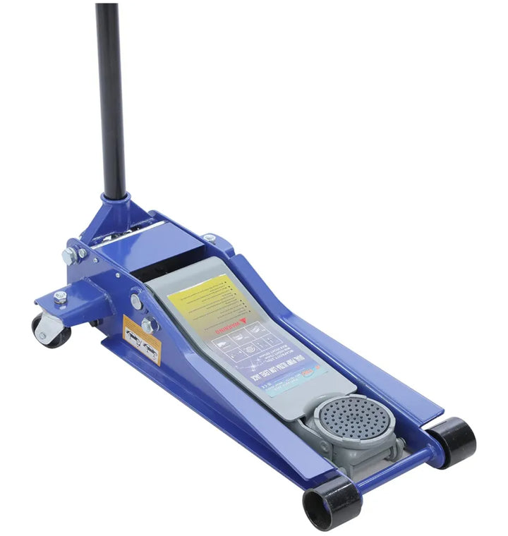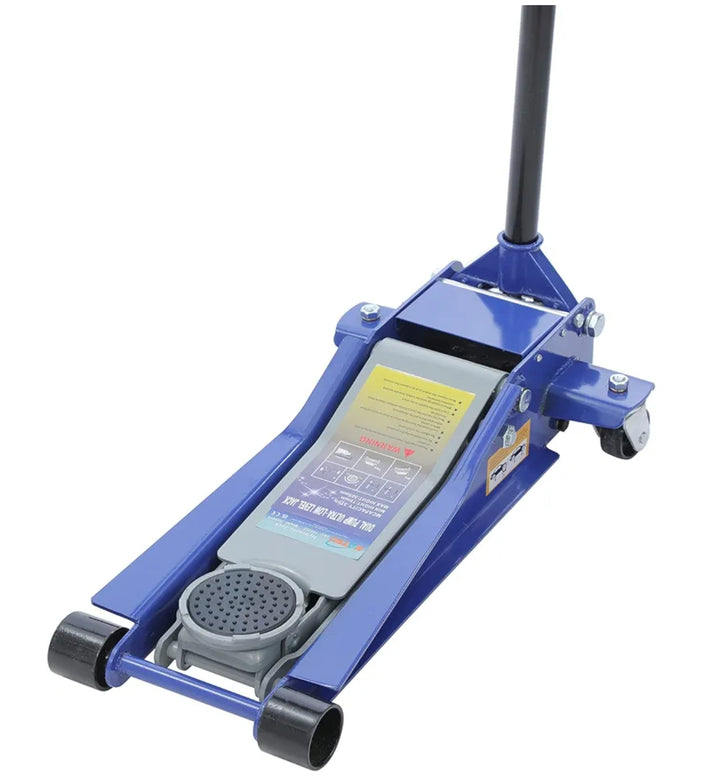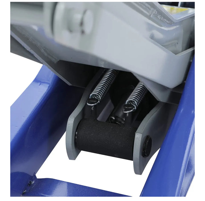 Twin piston pump quick lift allows you to easily raise the jack to the desired height and with ergonomic carrying handle.