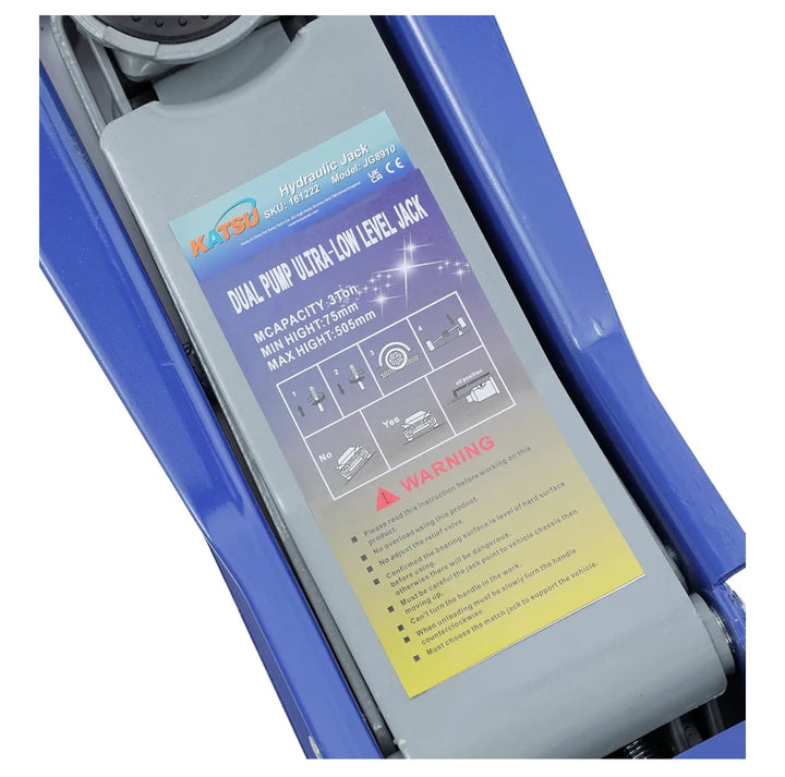 3 Ton (6000lbs) loading capacity with 75mm minimum lifting height and 505mm maximum height.
