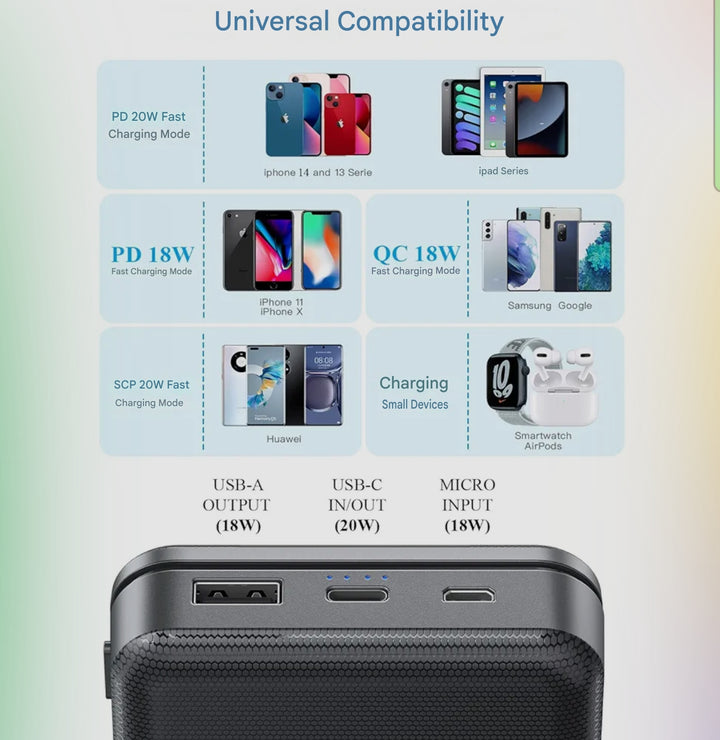 New version USB-C input & output external mobile phone batteries: unlike most chargers that only have a USB-C input, 20W via a USB-C input & output that fits perfectly with your new phones, pad and all upcoming USB-C devices.