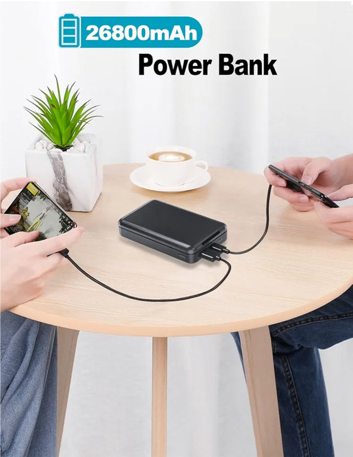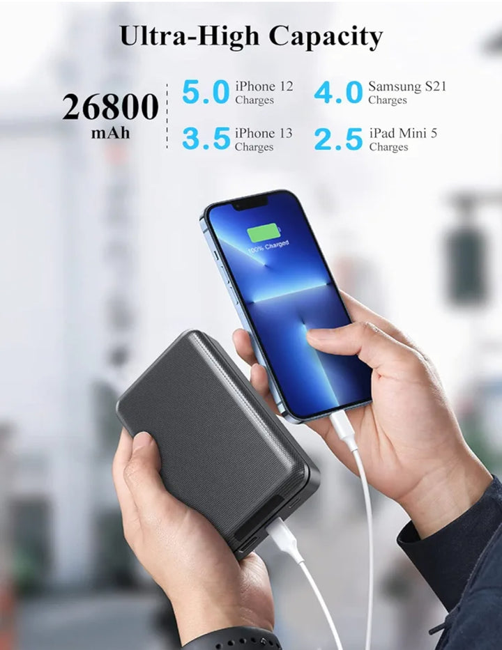 SUPER FAST CHARGING: Portable power bank with high capacity. The 26,800 mAh power bank can charge your phone at least 4-6 times. Suitable for business, travel, going out, you don't have to worry about the low battery level of your phone.