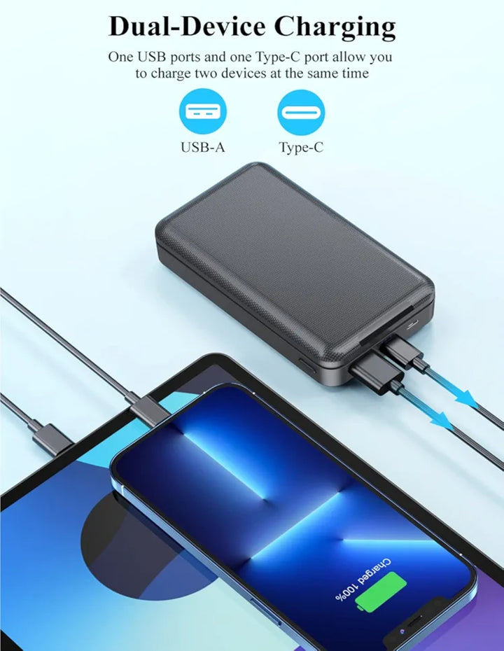 Charge two devices at the same time and safe: with a USB-C port and a built-in USB ports, up to two devices can be charged at the same time. Features a sophisticated multiple safety protection system for batteries to avoid problems such as overcurrent, overvoltage, short circuit and overheating.