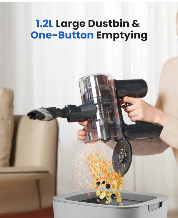 【Highest 5-level Filtration & 1.2L Dust Cup Release】This hardwood floor vacuum cleaner has a fully sealed 5-stage filtration system with H10 Hepa, which can effectively filter more than 99% of bacteria and dust mites and discharge cleaner air,The extra-large 1.2 L dust cup can be easily released in 1Second with a single press, without dirtying your hands.