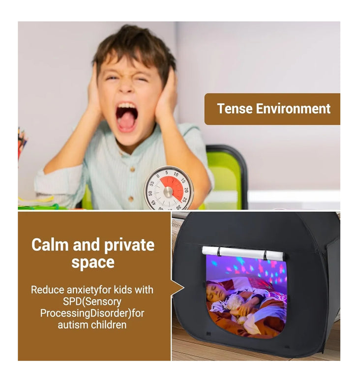 【Enhanced Focus & Engagement】The sensory tent blocks outside distractions and provides children with a calm space. Shielded from sensory overload, children can delve deeper into activities like reading and learning, allowing for heightened concentration.