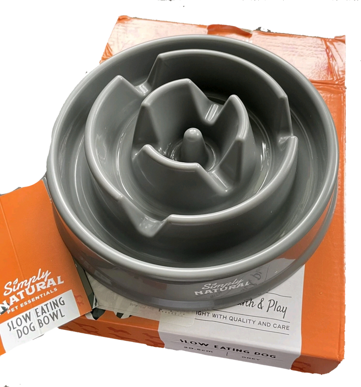 Introducing the Simply Natural Slow Eating Dog Bowl, a must-have for pet owners who value their furry friends' health and well-being. With a diameter of 20.5cm and made of durable plastic material, this standard dog bowl from Simply Essentials is perfect for dogs of all sizes. Its grey colour adds a touch of elegance to your pet's feeding area.