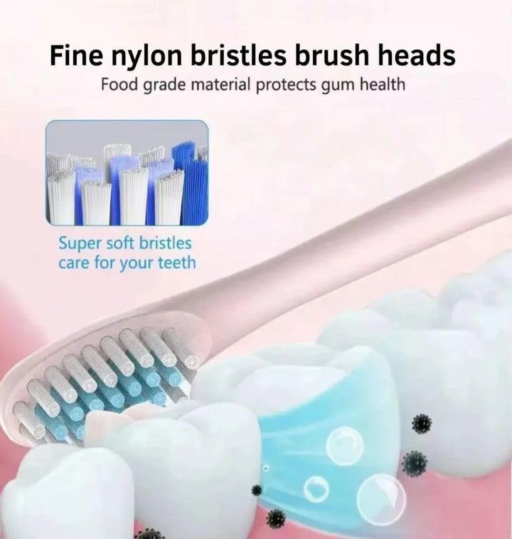🪥 INCLUDES 4 SOFT BRISTLE BRUSH HEADS: High-quality bristles made from durable nylon material maintain their shape and cleaning power even after extended use. Easy to replace for optimal hygiene.