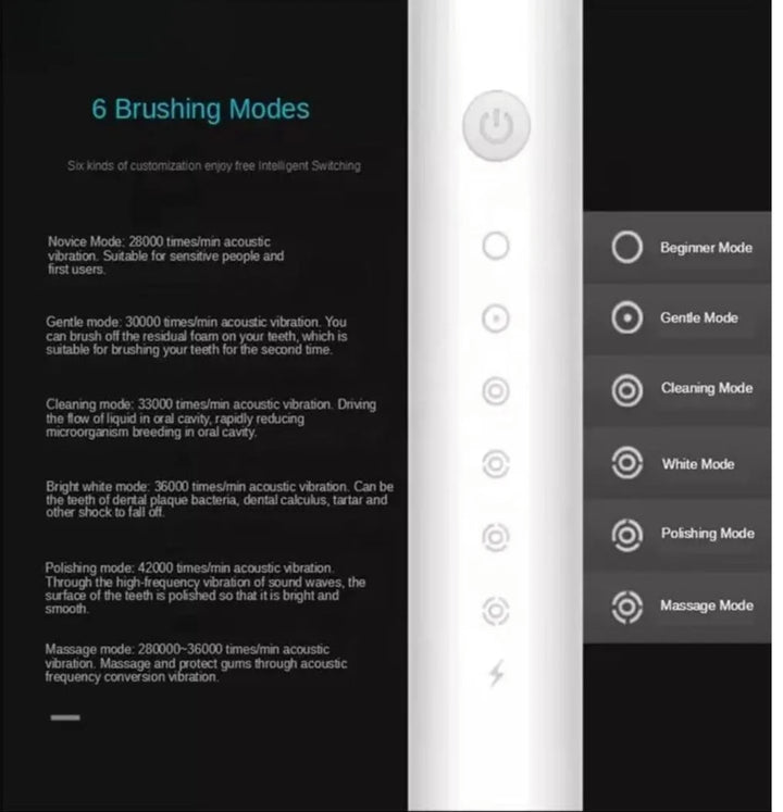🦷 SIX CUSTOMISABLE CLEANING MODES: Features 3 continuous modes (gentle, standard, intense) and 3 pulsating modes for varying intensities—ideal for everything from sensitive gums to deep plaque removal.